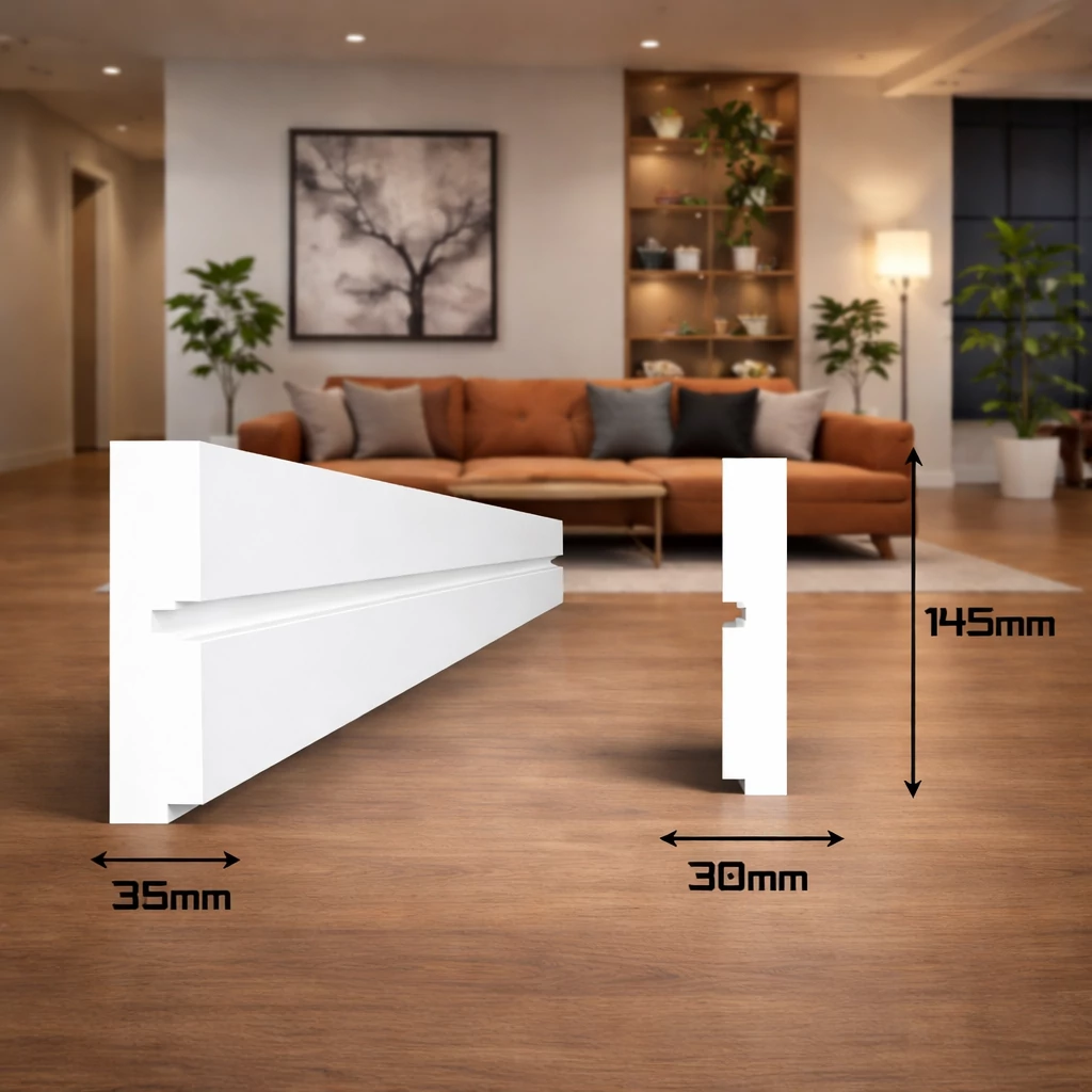 XPS formahabosított kemény polisztirol anyaga könnyű, mégis stabil és tartós. Felülete vízbázisú, oldószermentes festékekkel könnyedén festhető, így a díszléc színe tökéletesen a környezethez igazítható. Ideális választás nappalikba, folyosókra, üzlethelyiségekbe és minden olyan beltéri térbe, ahol a modern fényhatás kiemelt szerepet kap.