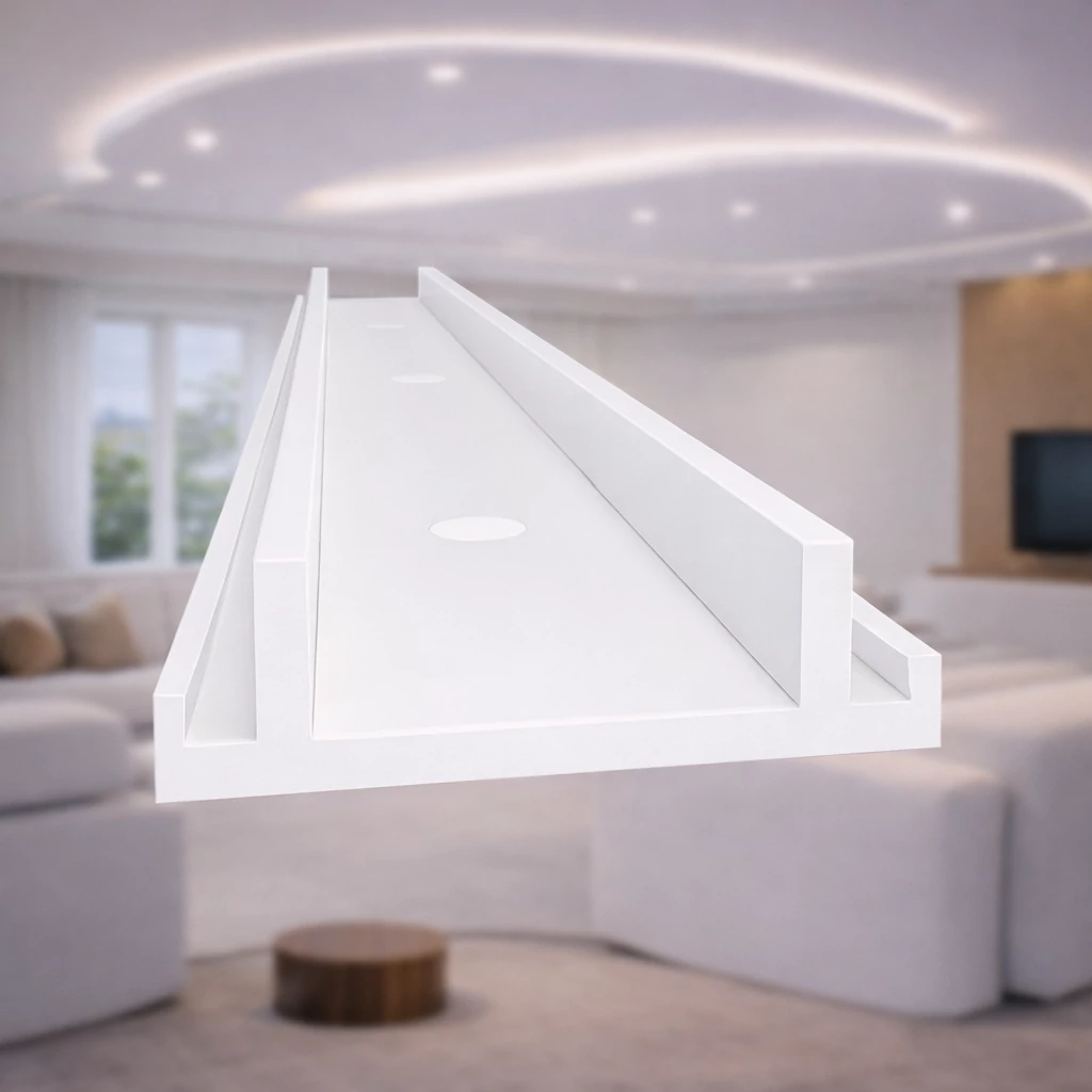 Ez a Polidecor® XPS mennyezeti elem ideális választás rejtett LED világítás kialakításához, ahol fontos az egyenletes fényeloszlás és az esztétikus, letisztult megjelenés. A 200 cm-es hossz lehetővé teszi hosszabb mennyezeti szakaszok megszakítás nélküli kialakítását, miközben a felület szabadon festhető, így könnyen illeszkedik modern és klasszikus enteriőrökbe is.